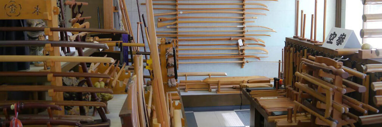 木刀は、代表的な木製武器のひとつです。刀を忠実に再現した木製の模造刀のため、真剣の代用として稽古で使われることもあれば、素振り等、日々の稽古の鍛錬用として使われることもあります。また、非常に軽い木刀の場合は、正確な打ち方を訓練するために使われることもあります。合気道や剣道、居合道の道場では、相対的に「伝統型木刀」と呼ばれる木刀を使用することが多い一方で、剣術や古流、古武道の道場などでは、その道場の流派によって異なる独特な動きや技に合わせ、その流派に適応する特別な仕様の「流派木刀」と呼ばれる木刀が使われています。